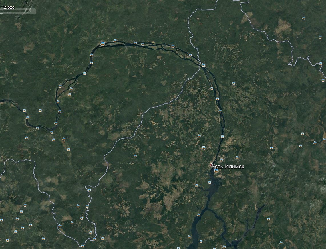 На скринах можно увидеть масштаб вырубки тайги за 13 лет (2003-2016).