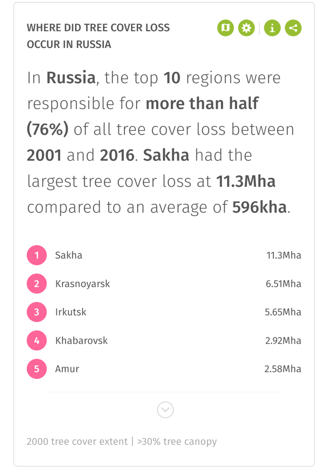 На скринах можно увидеть масштаб вырубки тайги за 13 лет (2003-2016).