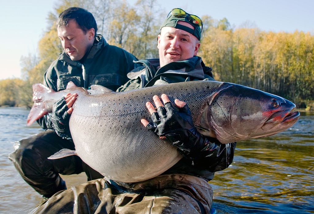 Таймень — это крупнейший представитель семейства лососевых. Зверюга вырастает до 200 сантиметров от морды до кончика хвостового плавника и может набрать свыше 80 килограмм веса. Вы только представьте эти габариты! Образ могучего хищника завершает необычный окрас: голова и передняя часть тайменя оливково-серые, а в нерест задняя часть тела и хвост покрываются огненно-рыжими всполохами.
