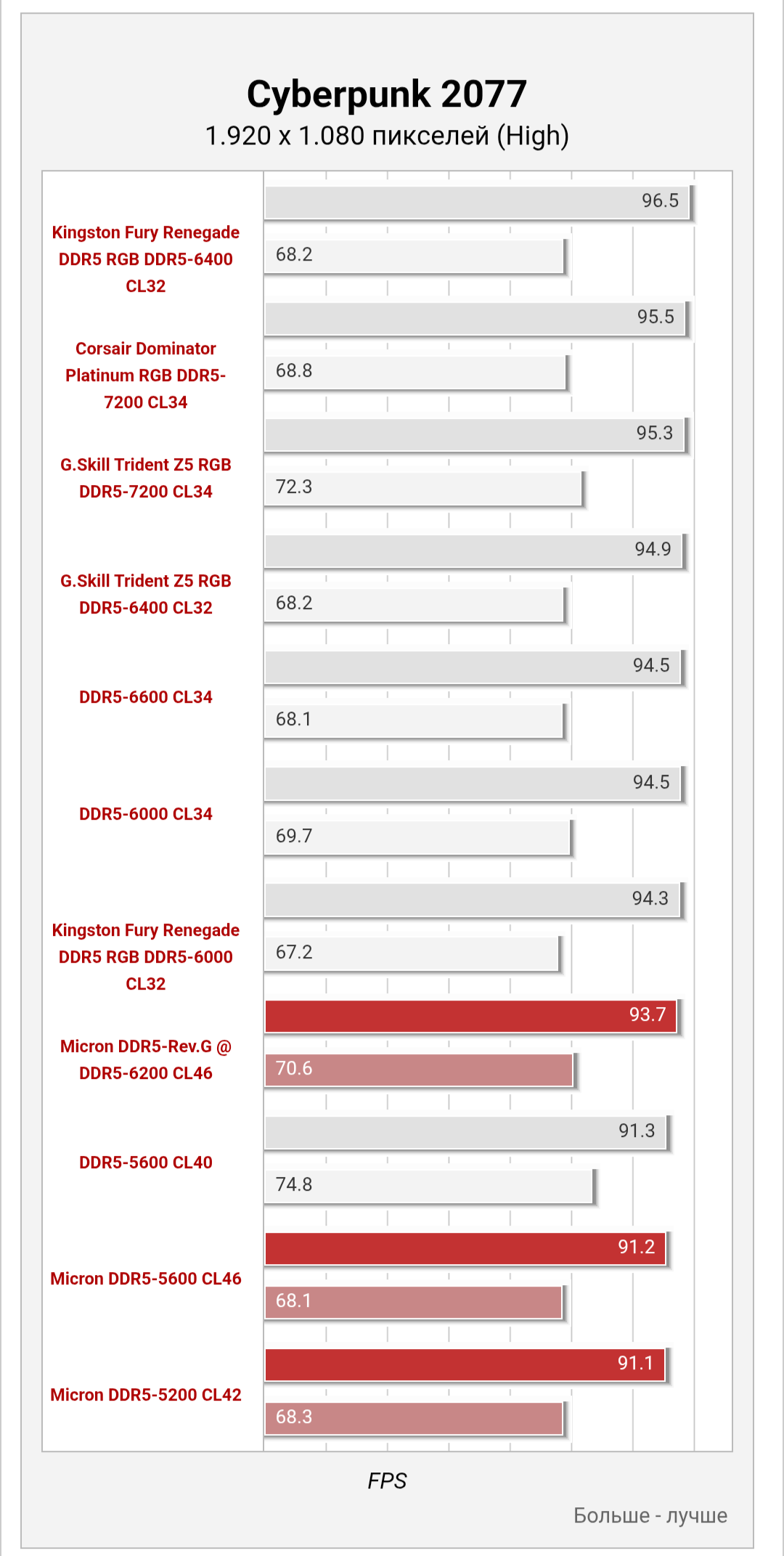 Уже устал читать статьи про то, как важны показатели таймингов и латентности в оперативной памяти, вот только на тестах я не увидел стоящую разницу в производительности между ОЗУ с низкими и высокими таймингами (про латентность не нашёл). Сейчас собираюсь в ноуте поменять свои 2х8Gb 4800 CL40 (Samsung DDR5 M425R1GB4BB0-CQKOL) на 2x16Gb 5600 CL46 (ADATA DDR5 5600 AD5S560016G-BAD), бенчмарки ниже на картинках. Латентность выше 90 в обоих случаях, сильно ли это влияет на производительность в играх и есть ли смысл в более низких показателях латентности и таймингов? Пока что я только вычитал, что все как один (почти) говорят, что латентность выше 80 это очень страшно, как и тайминги выше 40, но конкретных примеров я не нашёл.