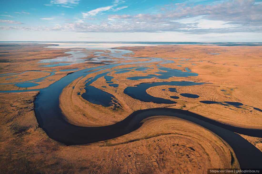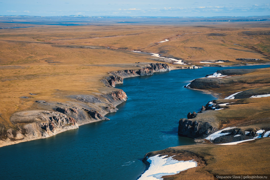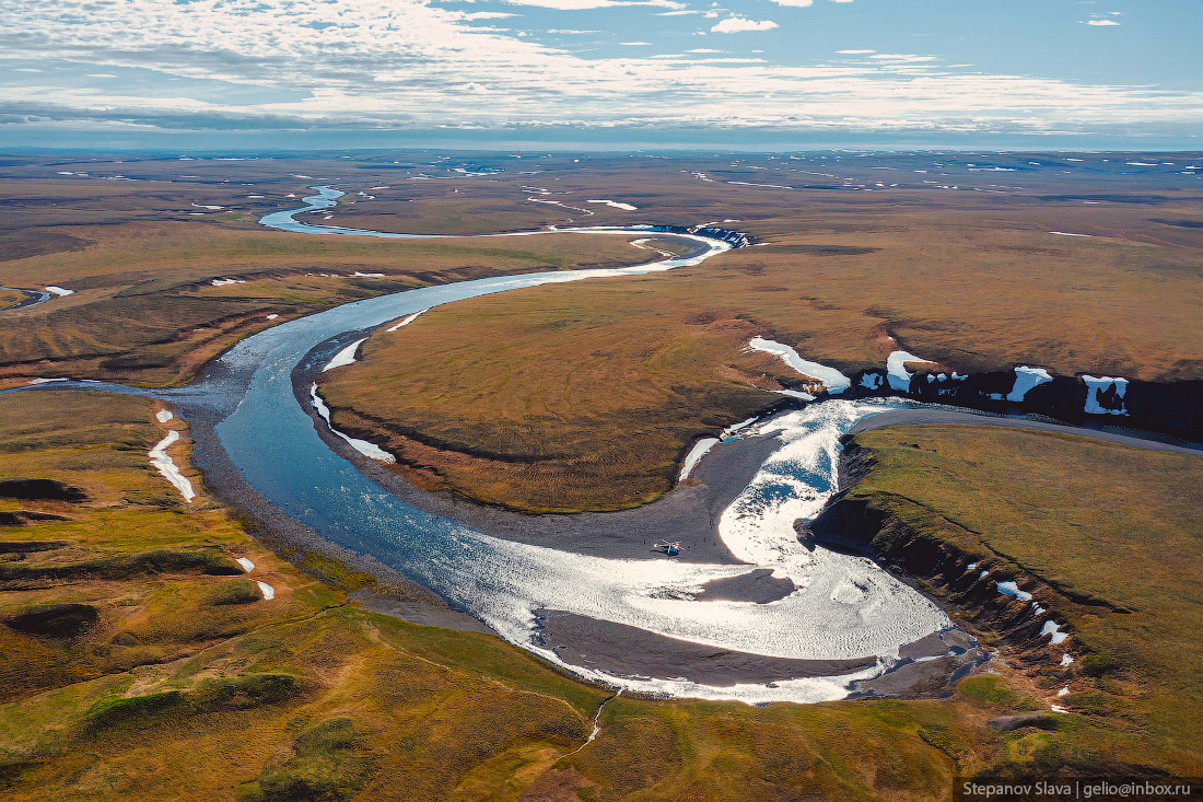 Река Унга проходит по Таймыру в извилистом русле и впадает в море Лаптевых.