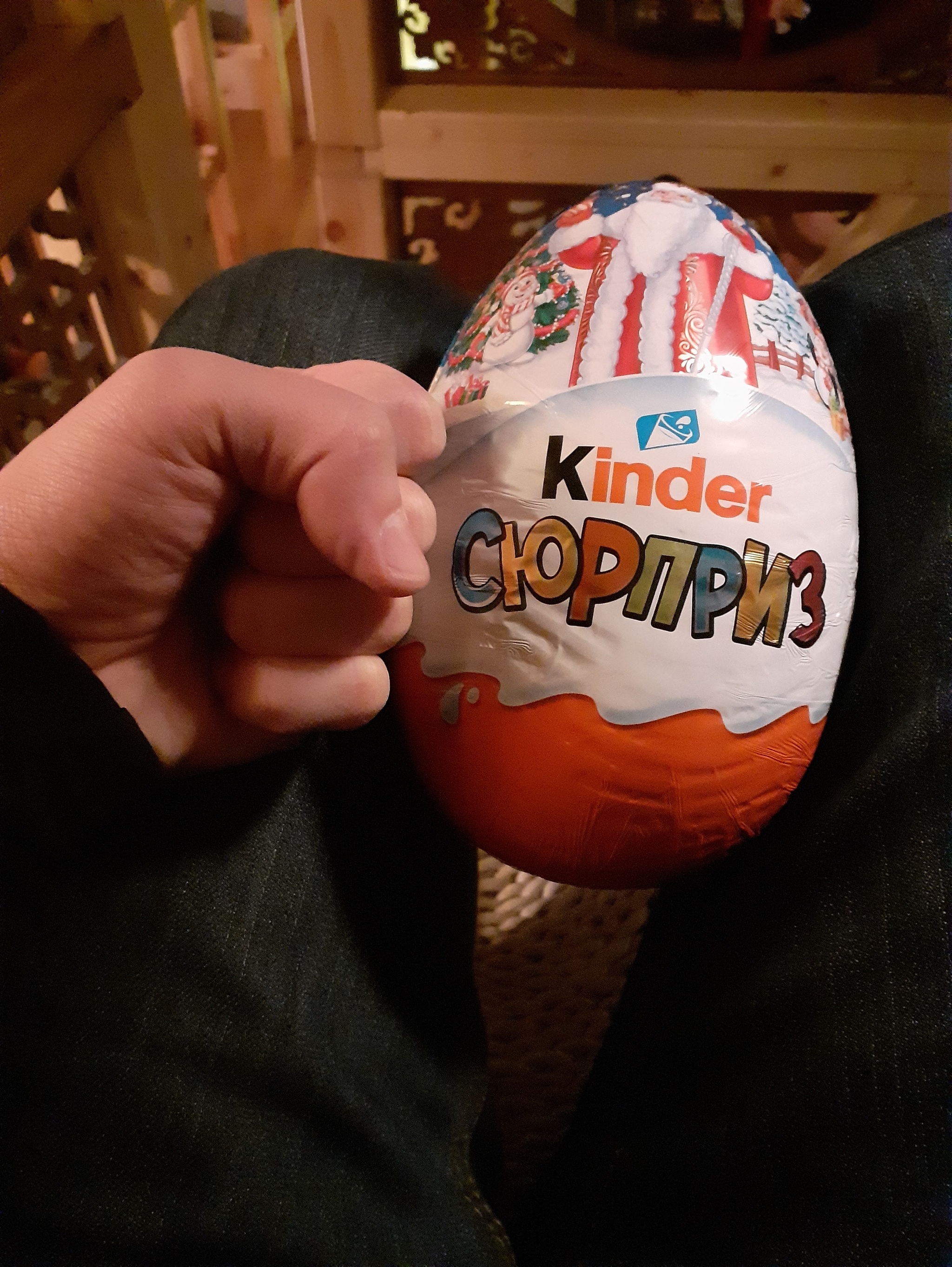 Настало время внимательно рассмотреть новогодний подарок от Крис. Это был Киндер-сюрприз, но гигантских размеров. Она мне когда-то уже дарила макси-версию этого ништяка, который раза в два больше стандартного, а этот был вообще, как Колосс Родосский. Теремок, запах хлеба и большой Киндер – вот это приход, товарищи!