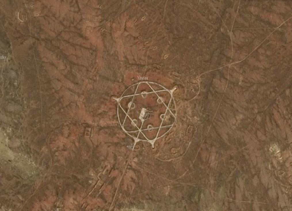 На просторах интернета, в частности на ютубе встречаются материалы с интригующими заголовками в духе "Загадочные места Казахстана" и тп. Иногда там мелькает спутниковый снимок с неведомым символом напоминающим звезду Давида и авторы строят различные, иногда абсурдные теории о его происхождении.