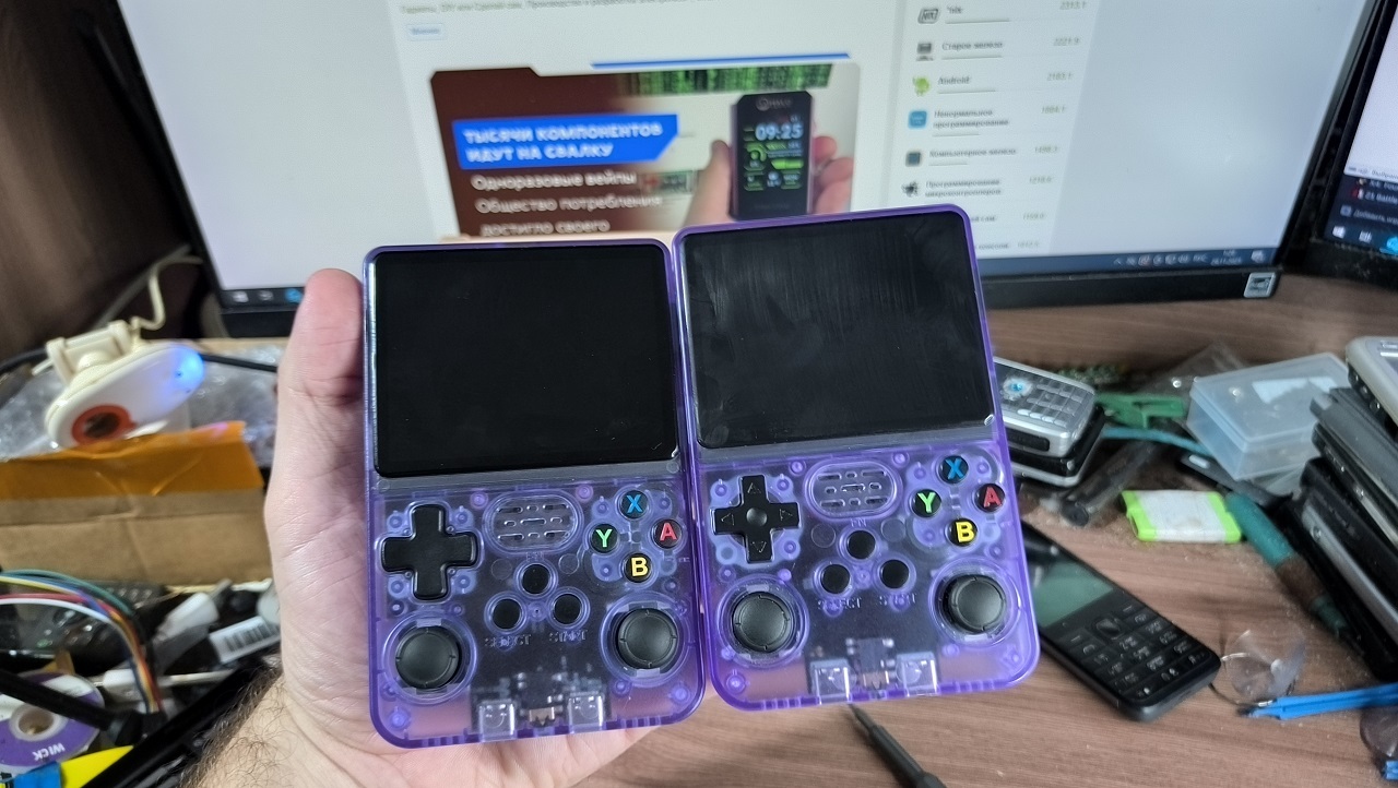 Как итог — на рынке появилось множество брендов по типу Anbernic, Miyoo и Data Frog, в бюджетном сегменте все они продают +- похожие консоли, аппаратную часть которых предположительно разрабатывает и производит одна и та же компания. Сначала эти консоли стоили около 100$, затем стало возможным найти вариант за ~75$, а теперь — так вообще за 23$ или 1.800 рублей! Но всё ли так просто? Для проверки я приобрел 3 вида R36s: «клон» на MIPS-процессоре от подписчика под ником Avia, новую консоль за 1.800 рублей с Ozon и ещё один «как-бы клон» R36s у подписчика Романа. Давайте же узнаем что у них находится под капотом!