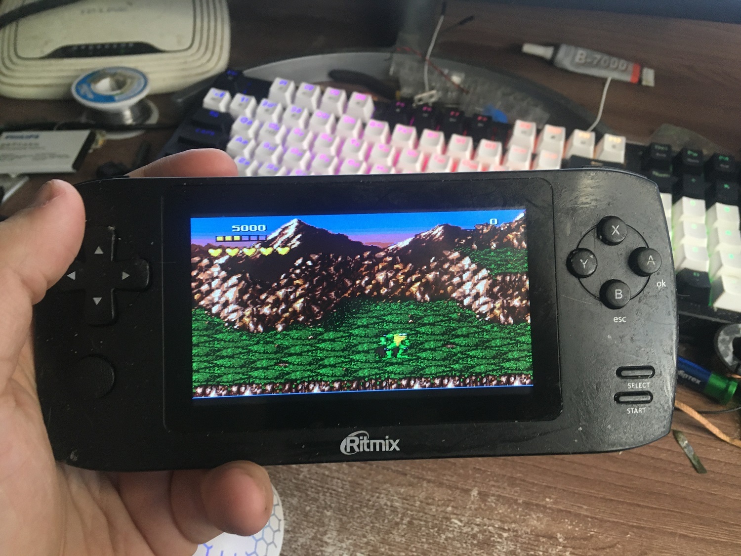 И вот с играми у таких консолей всё было хорошо. Дело в том, что чипсеты в этих плеерах обычно базировались на современном и мощном для тех лет ядре ARM926EJ-S, которое свободно работало на частоте от 104 до 208МГц. Помимо этого, в таких чипсетах был достаточно продвинутый контроллер дисплея, который позволял не только выводить фреймбуфер на ЖК-матрицу, но и быстро рисовать примитивы по типу линий и прямоугольников, а также копировать изображения на дисплей (BitBLT). Покумекав, китайцы поняли — если MP4-плееру приделать игровые кнопки и портировать туда эмулятор NES, то он становится вполне полноценной портативной ретро-консолью. Учитывая что встроенная память позволяла загрузить почти весь ромсет NES, это были почти ультимативные устройства для ретро-гейминга!