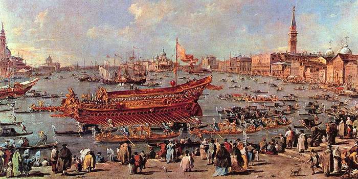 Бучинторо (церемониальная галера венецианских дожей) XVIII века на картине Франческо Гварди. И такую красоту французы не пожалели.