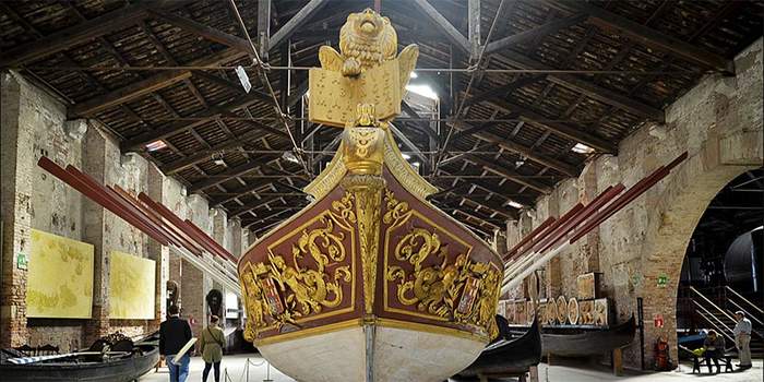 Сейчас Арсенал уже не делает корабли. Там находится военно-морской музей Италии: в огромных ангарах проводятся выставки, и на всей территории древнего гиганта судостроения ведутся активные реставрационные работы.