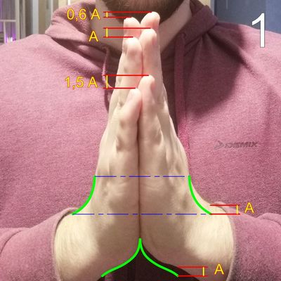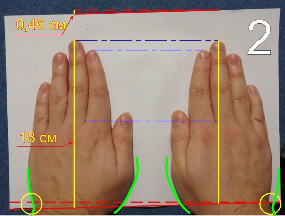 Для большей наглядности я на листе бумаги отметил длину пальцев и ладони.