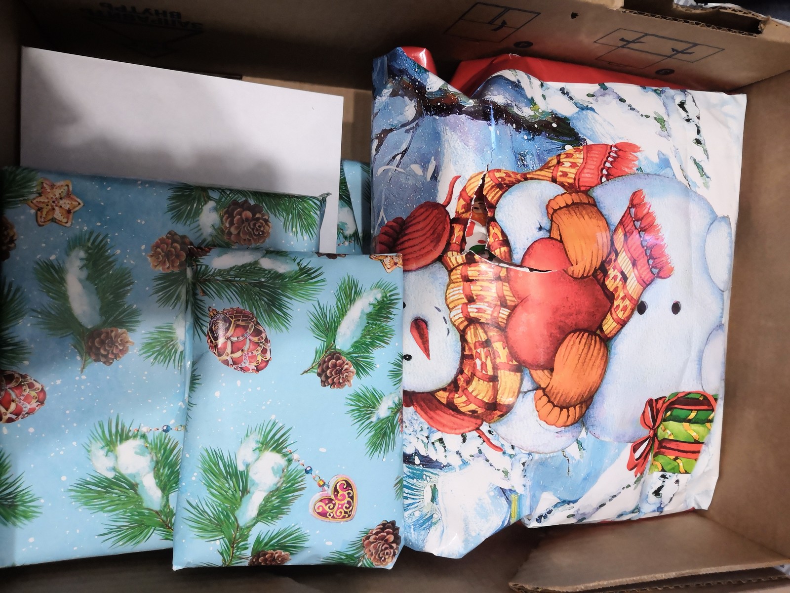 Мой первый обмен подарками такого рода и скажу - это круто! Моя тайная снегурочка из Москвы, тщательно упоковала подарочки.