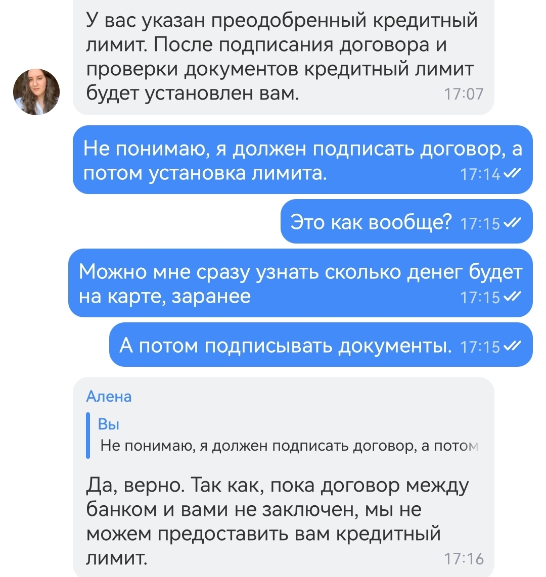 13 ChiefPetry Т-банк 6 месяцев назад Один вопрос. Почему я должен подписать документы на открытие кредитного счёта, не зная какая сумма там будет. Впервые такое встречаю, где я должен подписать документы, а потом банк решит сколько мне выдать денежных средств. [моё] Т-Банк Центральный банк РФ Оператор Длиннопост 2 1 Ещё 0