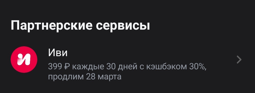 Внезапно увидел в чате поддержки уведомление, что мне подключена подписка иви. Якобы я выбрал ее в категориях повышенного кэшбека.