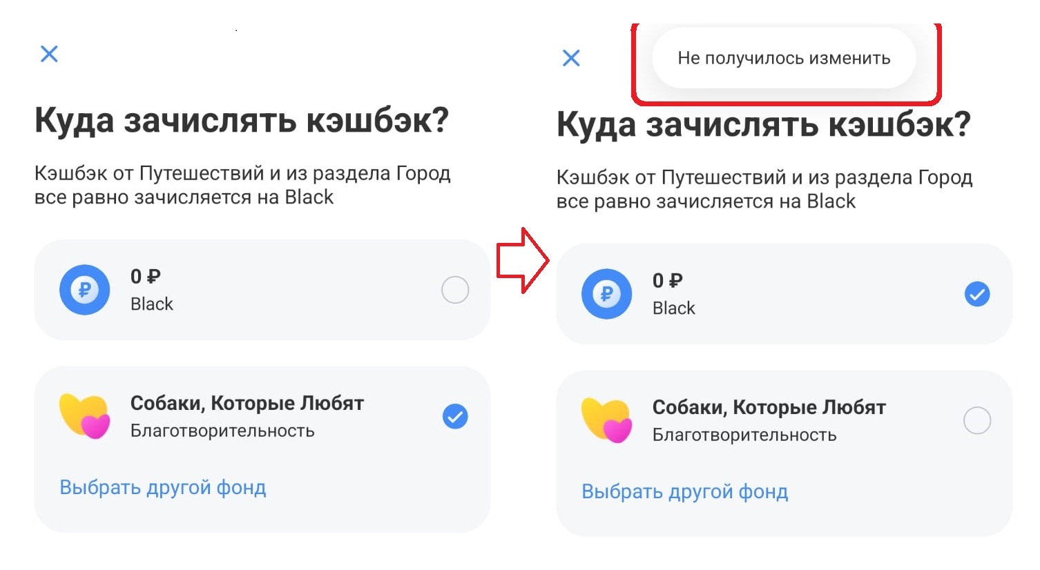 т.е. резюмируя, по логике банка я сам выбрал направление кэшбека, но при этом я не могу этого сделать, потому что приложение банка у меня устаревшее, вот такой вот парадокс))