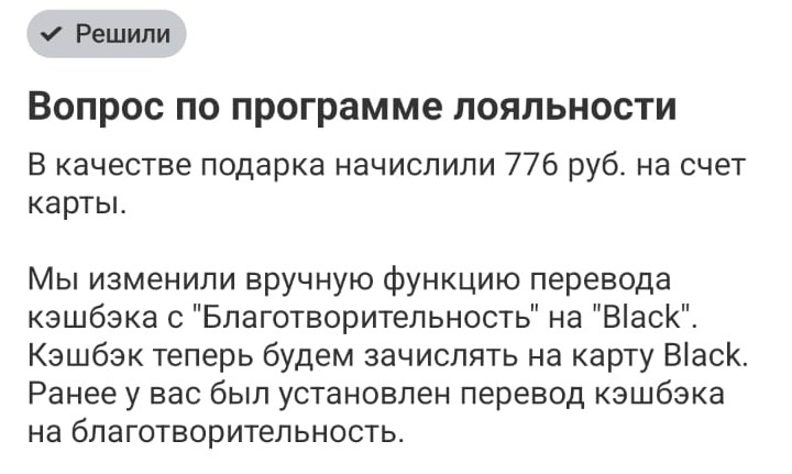 Для ЛЛ - Т-Банк начислил кэшбек, затем сам его перевел собакам на благотворительность, деньги затем вернул. Но осадок остался.