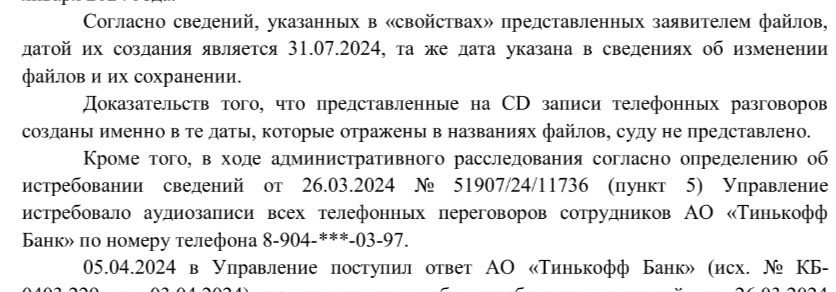 - суд проверил сами аудиофайлы и пришёл к выводу, что они созданы уже после рассматриваемых событий и как бы намекнул на их изменение что вы там колдовали, злодеи? Суд за дурака считаете?