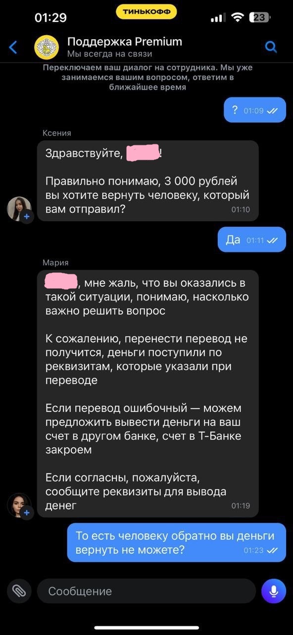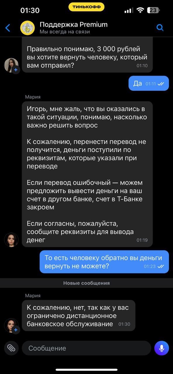 Т-банк, пожалуйста, помогите пока добрый человек не устал от всего этого и не передумал вернуть мои деньги.
