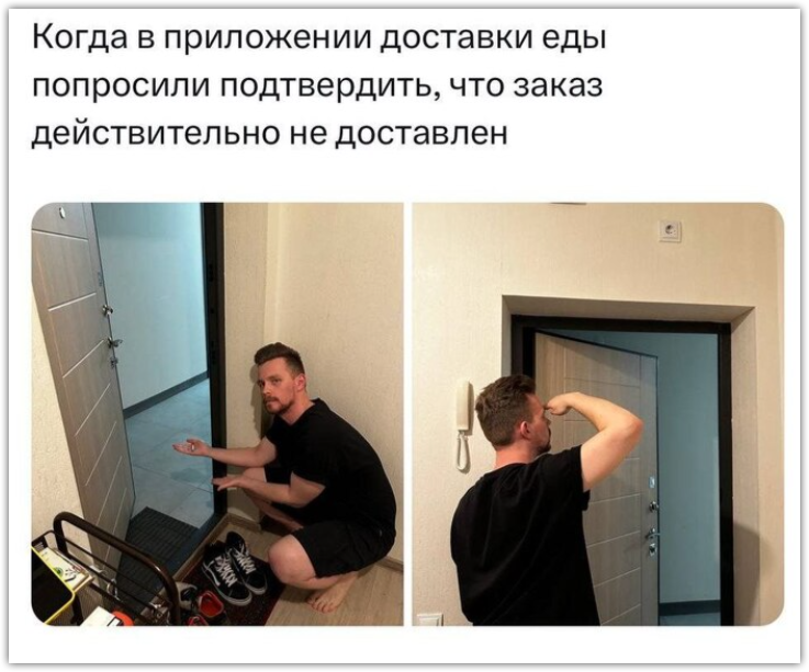 Мне Яндекс еда верит на слово. Однажды вовсе дикая ситуация была. Заказали пиццу на работу. Я решил встретить курьера. Вижу вдалеке подъехал курьер. Остановился, достал телефон, что-то нажал и уехала мне пришло уведомление что заказ доставлен.