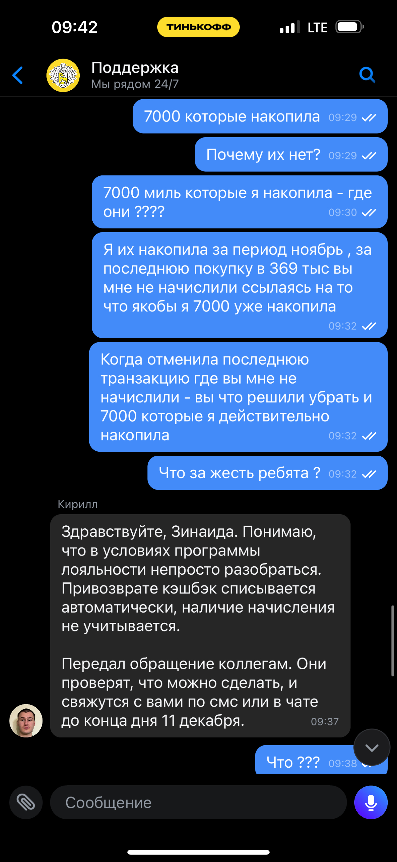 В общем ситуация такая - меня кинул «всеми любимый» банк «Т-банк», ну а сначала все по порядку. Так как у меня идет грандиозная стройка решила я воспользоваться своей картой S7 от т-банка на покупки для начисления миль. В период 09.11-09.12 этого года я накопила - 7000 миль, а это оказывается предел (лимит) моей подписки, и конечно, я не знала и совершила покупки от 30.11 и 03.12 на общую сумму 486 тыс рублей, где по этим двум покупкам мне не стали начислять мили, ссылаясь на то, что у меня обычная подписка с максимальным начислением 7000 миль. Было досадно, но что поделать - я отменила последнюю транзакцию 369 тыс., и знаете что - барабанная дробь - по итогу МНЕ НИХРЕНА НЕ НАЧИСЛИЛИ. 😂 то есть 7000 миль просто испарились, в поддержке говорят: