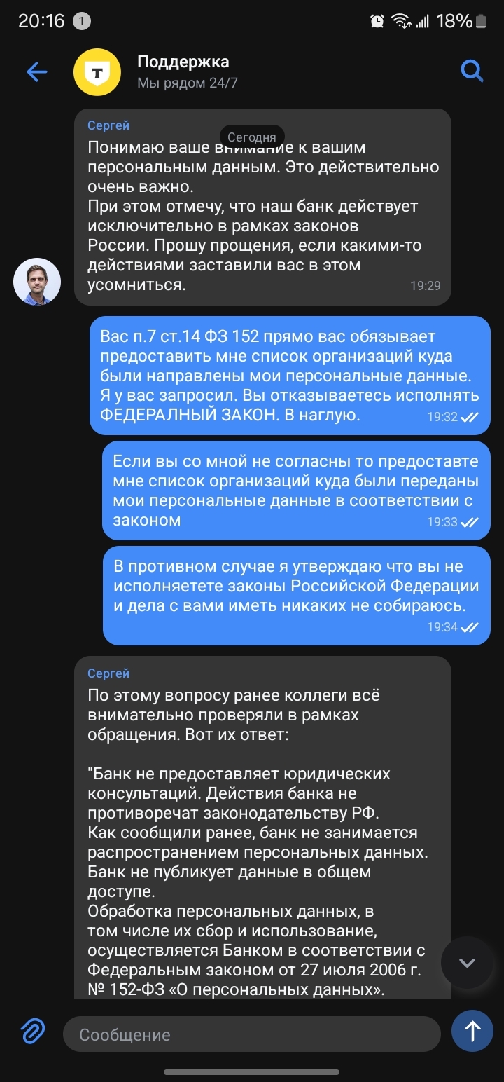 Т-Банк в открытую нарушает законы Российской Федерации и ничего не стесняется