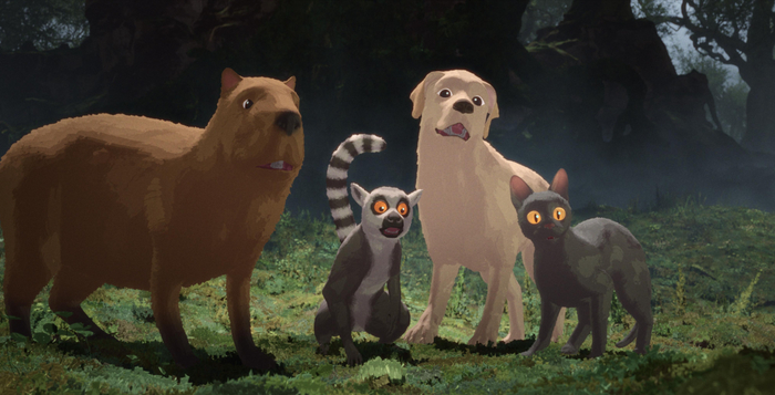 Вернемся к «Течению». Дело происходит на развалинах какой-то цивилизации, но людей не видно. Похоже, произошел какой-то кабздец и никого не осталось. Резкое повышение уровня воды может говорить о разрушении дамб или каких-то ГЭС, и, судя по населяющим округу животным, дело происходит где-то на югах, ибо лемуры, капибары и прочие живые существа родом явно не с северов. Нашему кошаку придется очень непросто: мало того, что к воде он относится очень не очень, так еще и размерами маловат, чтобы конкурировать за пропитание.
