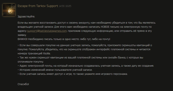Приятная неожиданность -- увидеть ответ от службы поддержки на следующий день. В течение всего вечера я собирал информацию, прикреплял платежные документы, скриншоты, выискивал все данные и, отправив им полную информацию о своем аккаунте на состояние последнего входа, решил всё это дело всё же держать на контроле. Попутно, разумеется, узнавал, а сколько же времени это может занять. И вот, на дворе июнь, 14-й день после написания заявки (а это не Steam и не 2008 год, прошу заметить - аккаунт был украден за считанные дни, как мне кажется, т.к. заявка была написана на иностранном языке), а ответа так и не последовало. Что же следует делать? Правильно, написать на 10-й день ещё одну заявку с отсылкой на старую. И вот... на неё тоже нет ответа. Вообще никакого. То есть служба поддержки банально игнорирует заявки о восстановлении доступа к украденному аккаунту.