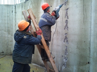 На данном фото "штыри" под ногами этих строителей - это арматурные выпуски для наращивания сверху арматуры той самой стены, которая и будет образовывать угол с уже залитой.
