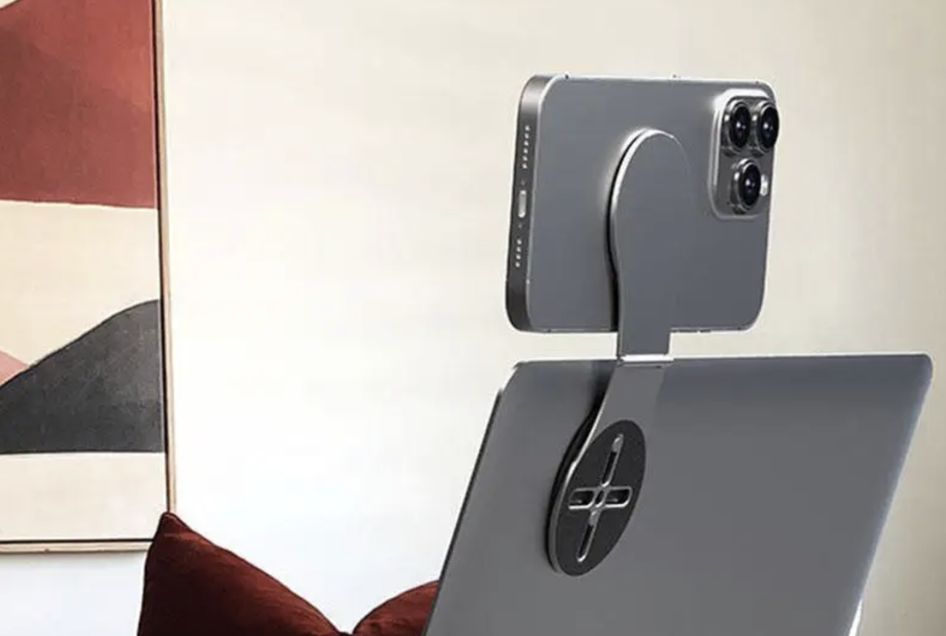 Магнитный держатель для экрана ноутбука превращает привычную работу в более удобную. Крепление фиксируется сбоку дисплея, позволяя разместить смартфон или планшет на уровне взгляда.