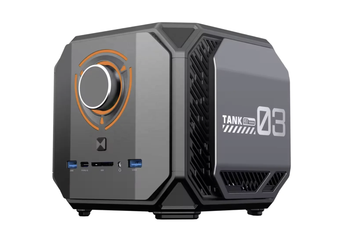 TANK 03 — компактный компьютер, который по мощности способен заменить крупный настольный системный блок. Внутри установлен процессор Intel i9 12900H и видеокарта RTX 3080, обеспечивающие производительность, достаточную для современных игр, 3D-рендера и видеомонтажа.