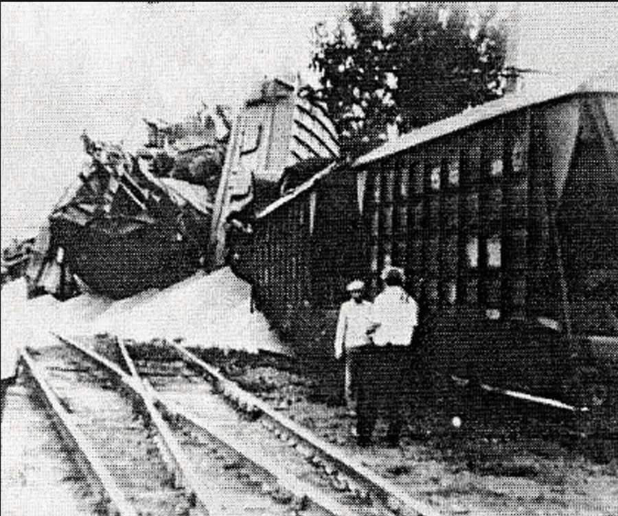 Седьмого августа, в полвторого ночи, грузовой состав массой более 5500 тонн на скорости порядка 140(!) км/час влетает на станцию. На стрелке рвётся автосцепка между первым и вторым вагонами (единственный положительный момент в этой истории), в результате чего второй вагон сходит с рельс, собирая на себя остальную часть состава, а электровоз в компании первого вагона влетает в хвост пассажирского поезда, сминая три хвостовых вагона, как пустые банки (если посмотрите на фото, то обломки, виднеющиеся из-под тепловоза - это всё, что осталось от одного из хвостовых вагонов).