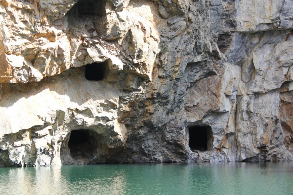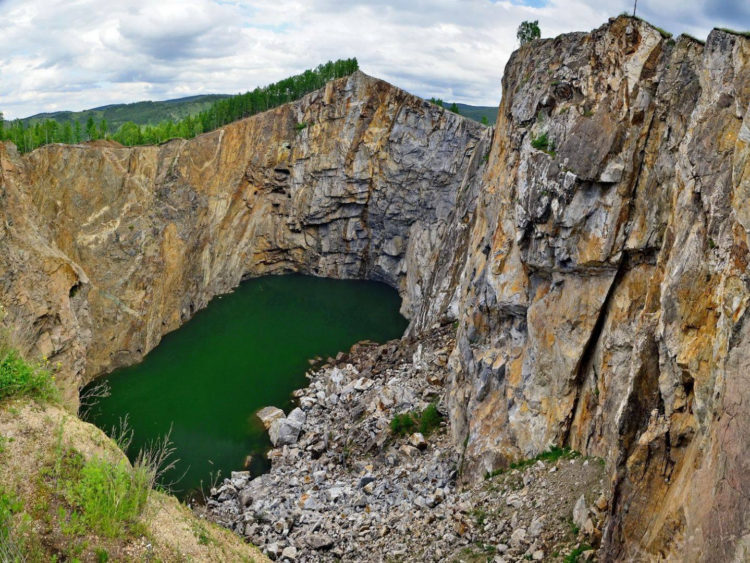 К концу пятидесятых гора стала походить на соты так ее «изгрызли». Разработчики попытались уйти за рудоносной жилой вглубь но нижние штреки стало заливать водой. Не обошлось без обрушений в один момент гора провалилась внутрь себя. Первоначально диаметр кратера составлял всего шесть метров. В этот момент и было принято решение разработку прекратить, оборудование демонтировать, а скалу взорвать.