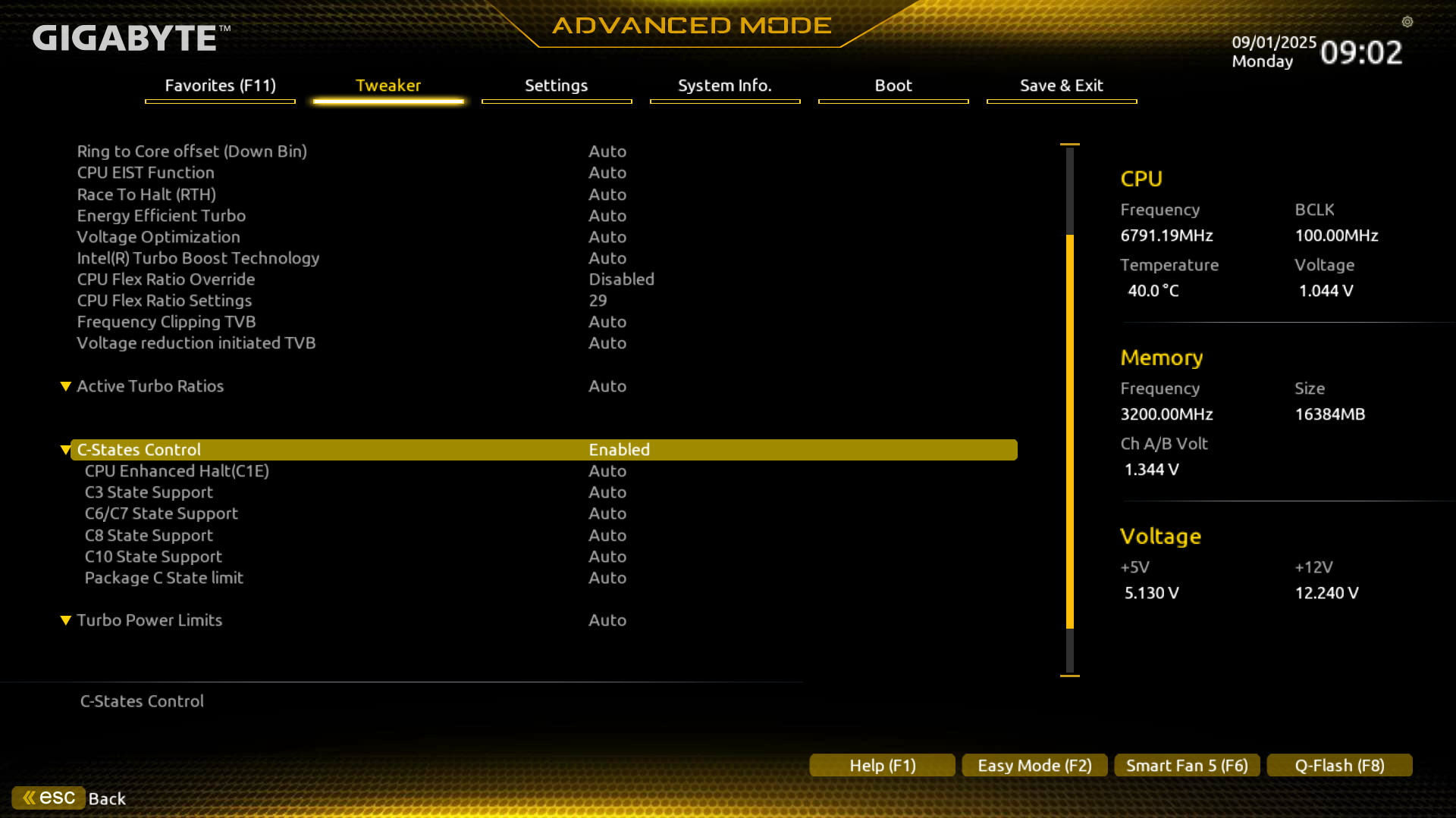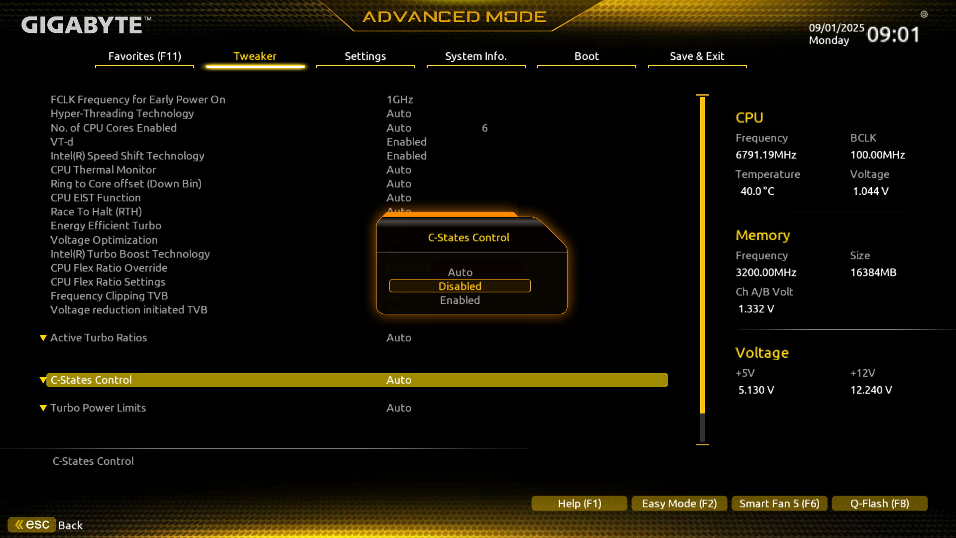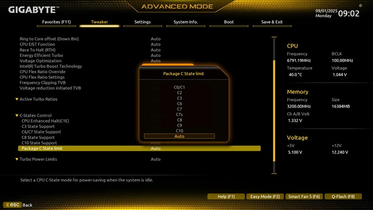 Gigabyte (платформы Intel): Advanced (или Tweaker) → CPU Settings → C-States Control