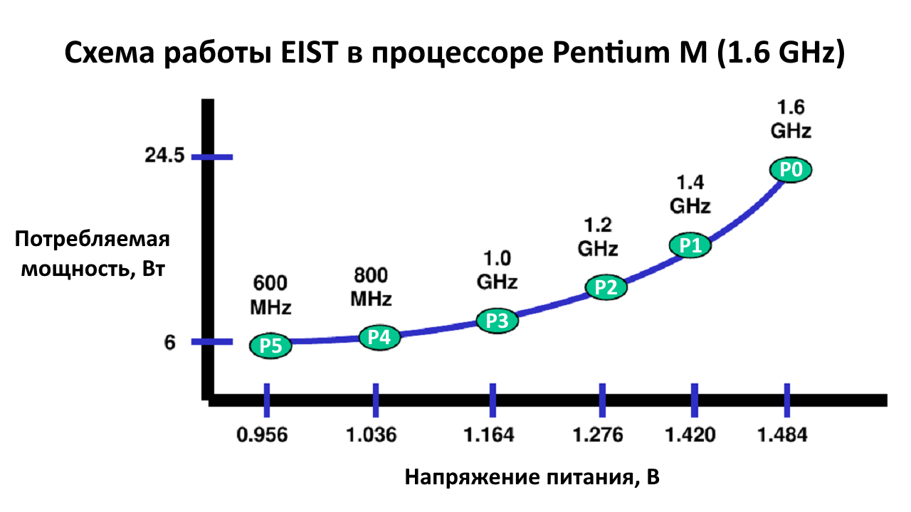 C-States решили вопрос энергопотребления в покое, но даже при частичной нагрузке ранние процессоры продолжали «молотить» на полную мощность. Для десктопов это особого значения не имело, а вот для ноутбуков каждый ватт сэкономленной энергии был на счету.