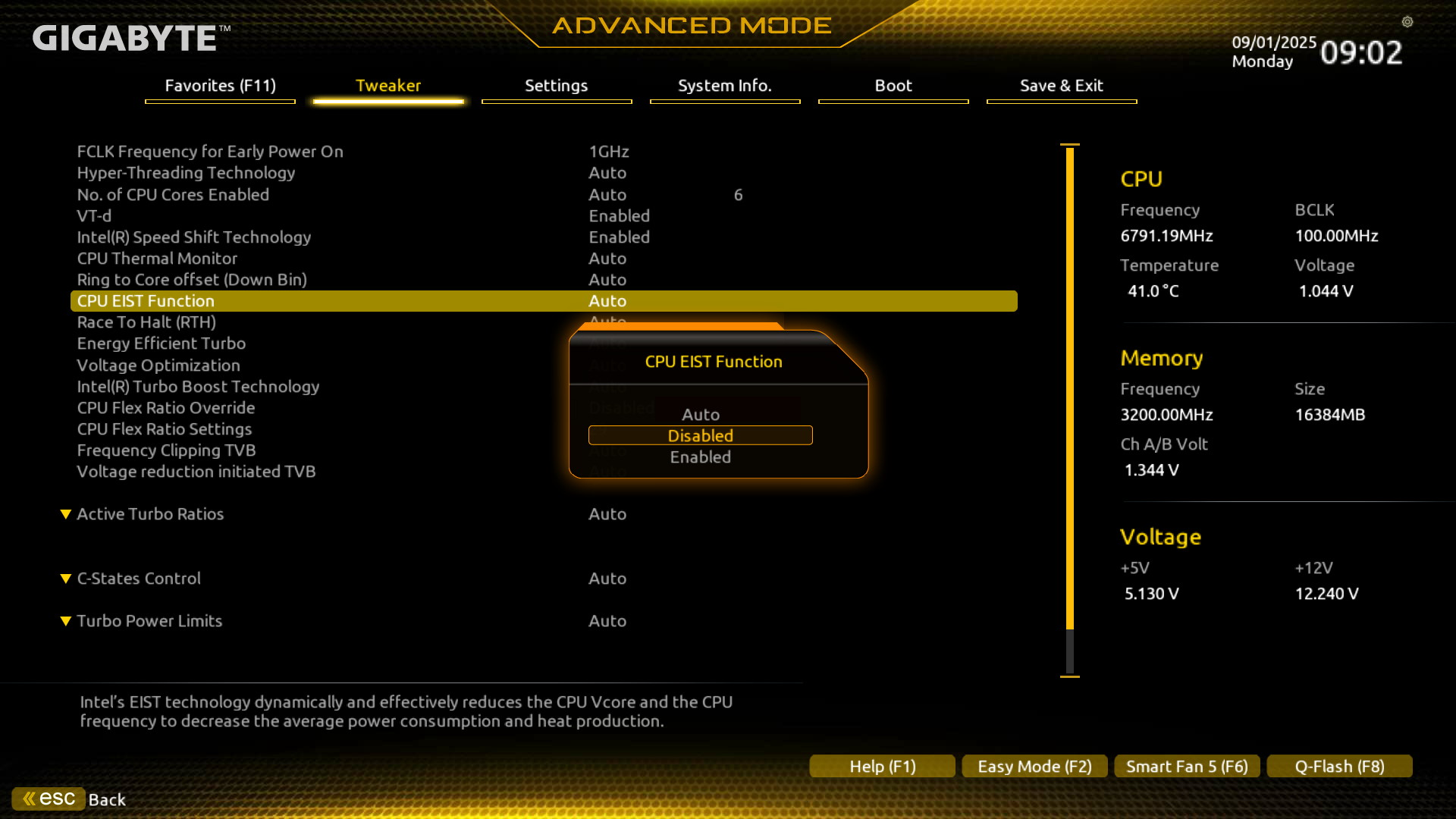 P-состояния процессора BIOS (за редким исключением) не позволяет настраивать по отдельности, можно лишь запретить переход в них в общем. Для этого достаточно выбрать в вышеописанных пунктах настроек вариант «Disabled/Запрещено». У современных материнских плат для платформ Intel пункты SpeedShift и EIST могут сосуществовать вместе — в этом случае нужно деактивировать их оба.
