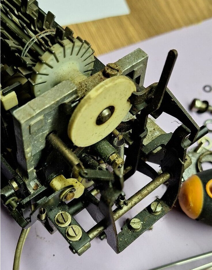 Сам механизм передатчика был отмыт в соляре и заново смазан машинным маслом. Для этого телетайпа, кстати, есть подробнейшая инструкция по обслуживанию и настройке с указанием всех точек смазки.