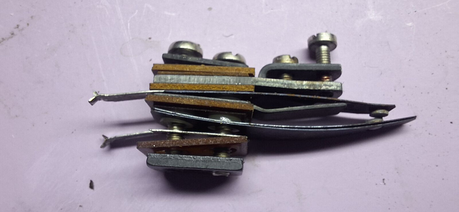 Что еще очень радует в древней технике так это то, что все можно разобрать до мельчайших деталей, а затем снова собрать. Все собрано на разъемных винтовых соединениях. Я без труда открутил планку с контактами, сами контакты от планки и разобрал эти контакты на мельчайшие детали.