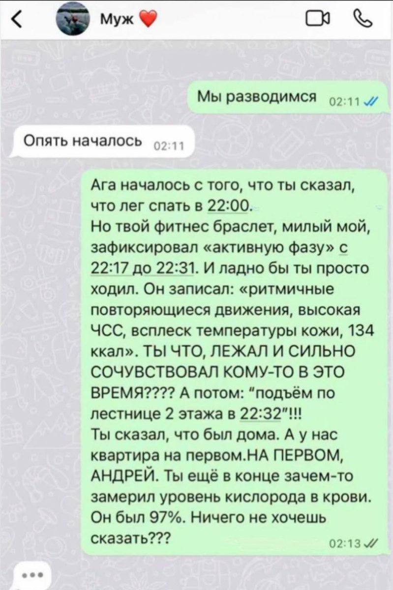 333 terebiata Мемы. Лучшее Юмор Технологии ломают судьбы1 6 месяцев назад Источник - https://t.me/trash_tv404/2833 Юмор Скриншот Переписка Отношения Измена Фитнес-браслет Telegram (ссылка) 74 6 2 1 1 1 Ещё 1