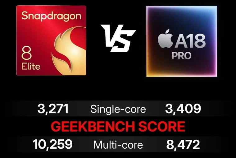 Из-за высокой тактовой частоты Oryon в Snapdragon 8 Elite гораздо быстрее, чем Cortex-X4 в Snapdragon 8 Gen 3: рост однопоточной производительности от поколения к поколению достиг практически полуторакратного. По этому параметру Qualcomm наконец приблизилась к современным SoC Apple A — если верить бенчмарку GeekBench 6, преимущество чипа A18 Pro над 8 Elite составляет всего несколько процентов.