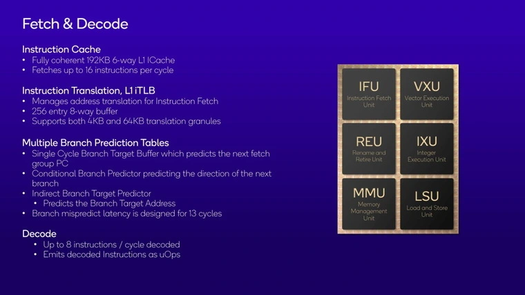 Ядро Oryon имеет восьмиполосный декодер — как, к примеру, самое современное Intel Lion Cove или Apple Everest. У топовых ядер ARM Cortex X4/X925 декодер имеет 10 полос, но работать на схожих с Oryon частотах они не могут.