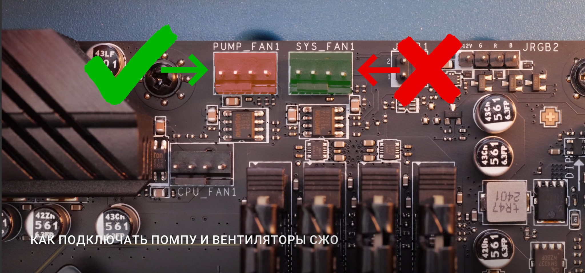 3-pin/4-pin — наиболее распространенный вариант, с помощью которого помпы получают питание от материнской платы. Важно помнить, что по сравнению с корпусными вентиляторами помпа потребляет больше энергии. Поэтому подключать ее нужно к тем разъемам, которые смогут обеспечить стабильную работу и не уйдут в защиту от перегрузки. На любой плате это первый и второй (при его наличии) разъем для кулера центрального процессора (CPU_FAN, CPU_OPT). А на многих платах высшего ценового диапазона для помпы предназначен отдельный разъем (PUMP_FAN, AIO_PUMP, W_PUMP).