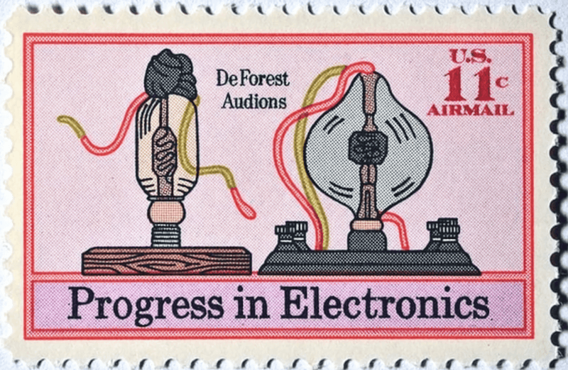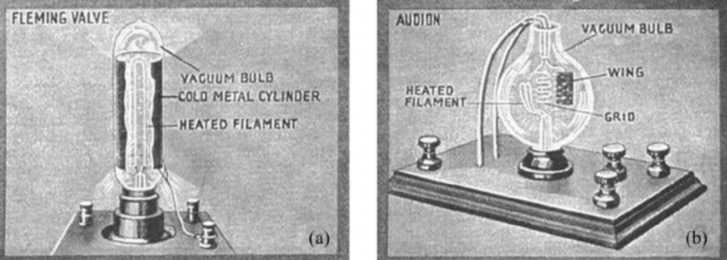 Предок вакуумных ламп — диод — был изобретен в 1904 году Джоном Амброузом Флемингом. Затем в 1906 году доктор Ли де Форест изобрел «аудион», название которого было составлено из слов «audio» и «ion». Он обнаружил, что сетка из тонкой проволоки, помещенная между нитью накала и металлической пластиной в вакуумной лампе, может управлять потоком электронов, идущих между нитью накала и пластиной.