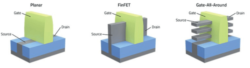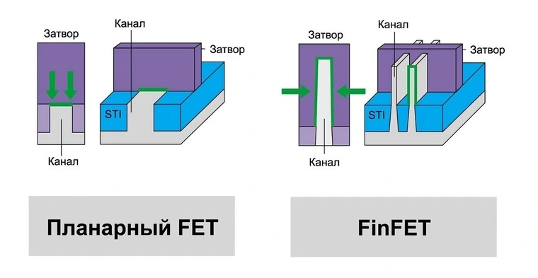 Однако в последующие десятилетия промышленность начала переходить на новую архитектуру: в 2011 году появились транзисторы FinFET (fin field effect), а с 2017 года началась разработка GAA (gate-all-around).
