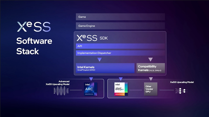 Появление третьего игрока со своей технологией могло бы только усугубить ситуацию. Однако в Intel приняли нетипичное для себя решение, и представили технологию, объединяющую сильные стороны DLSS и FSR. То есть — ИИ-базированный апскейл, работающий на всех современных видеокартах.