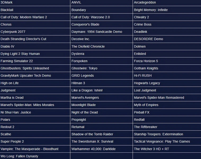 А вот с этим связана одна из серьезных проблем Intel: их технология поддерживается в гораздо меньшем количестве проектов, чем DLSS и FSR. Опубликованные в середине 2023 года списки насчитывали порядка 50 проектов, причем реально интересных или хотя бы просто громких тайтлов там было еще меньше. Хотя если сравнить с 12 играми на релизе, динамика здесь прослеживается.