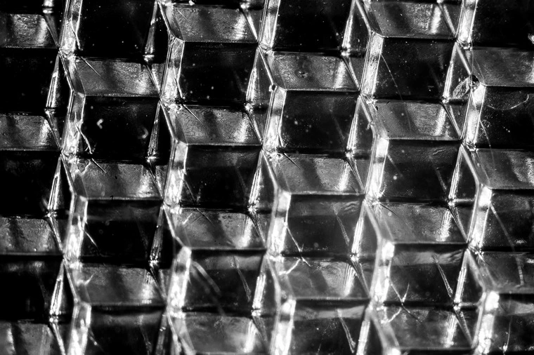 Третий и шестой слои — рассеивающая пленка. Она обладает настолько мелкой и хаотичной структурой поверхности, что снимок был сделан на грани возможностей обычного объектива.