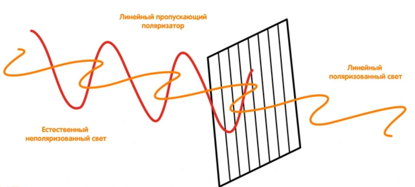 Анализатор — это та же самая поляризационная пленка, но ориентированная перпендикулярно поляризатору. Она превращает изображение в видимое. Удалив эту пленку с экрана, можно скрыть изображение от посторонних глаз.