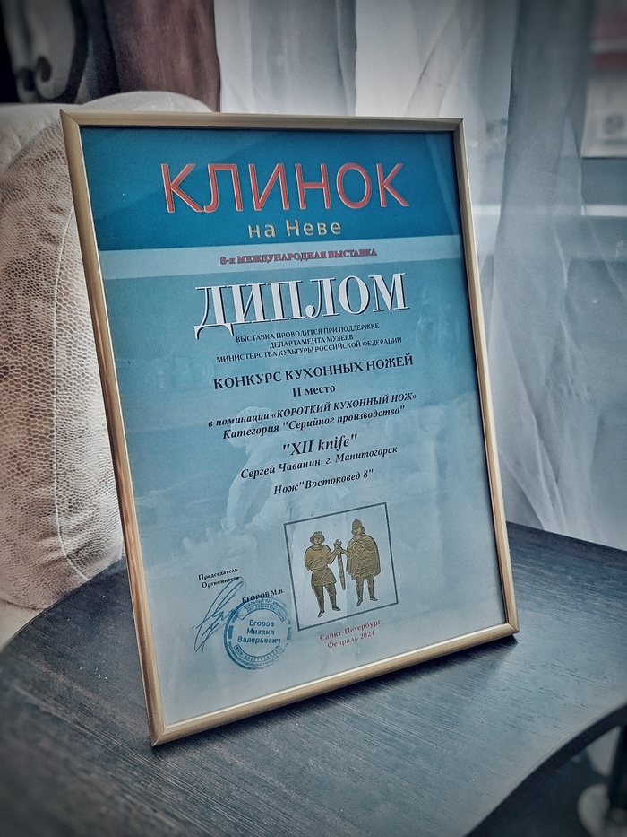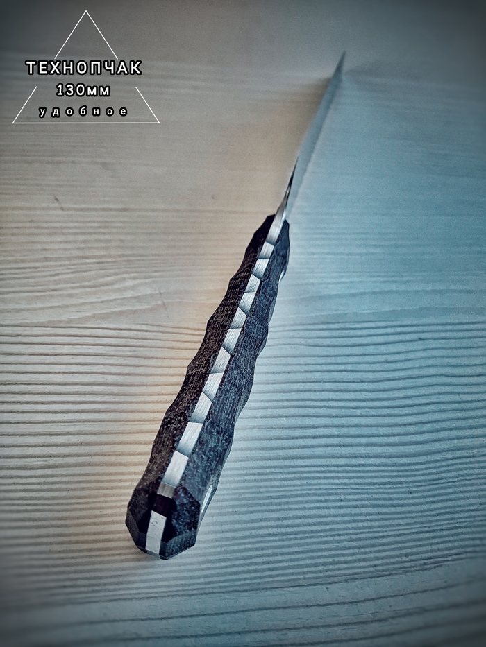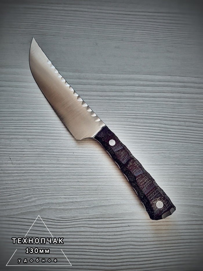 Приветы. Есть у меня в модельном ряду альтернативный основному кухонный набор на три позиции, 105,130 и 160мм, состоящий из пчаков. Ни разу не чистокровных, конечно, но по принципу работы абсолютно сходных. Сегодня покажу средний, 130мм. Состоит из 95х18 и текстолита. Штука чрезвычайно милая, и так считаю не только лишь я))) На последней выставке Клинок на Неве он занял второе место среди коротких кухонных ножей серийного производства. В дипломе наличествует прикольная опечатка)))