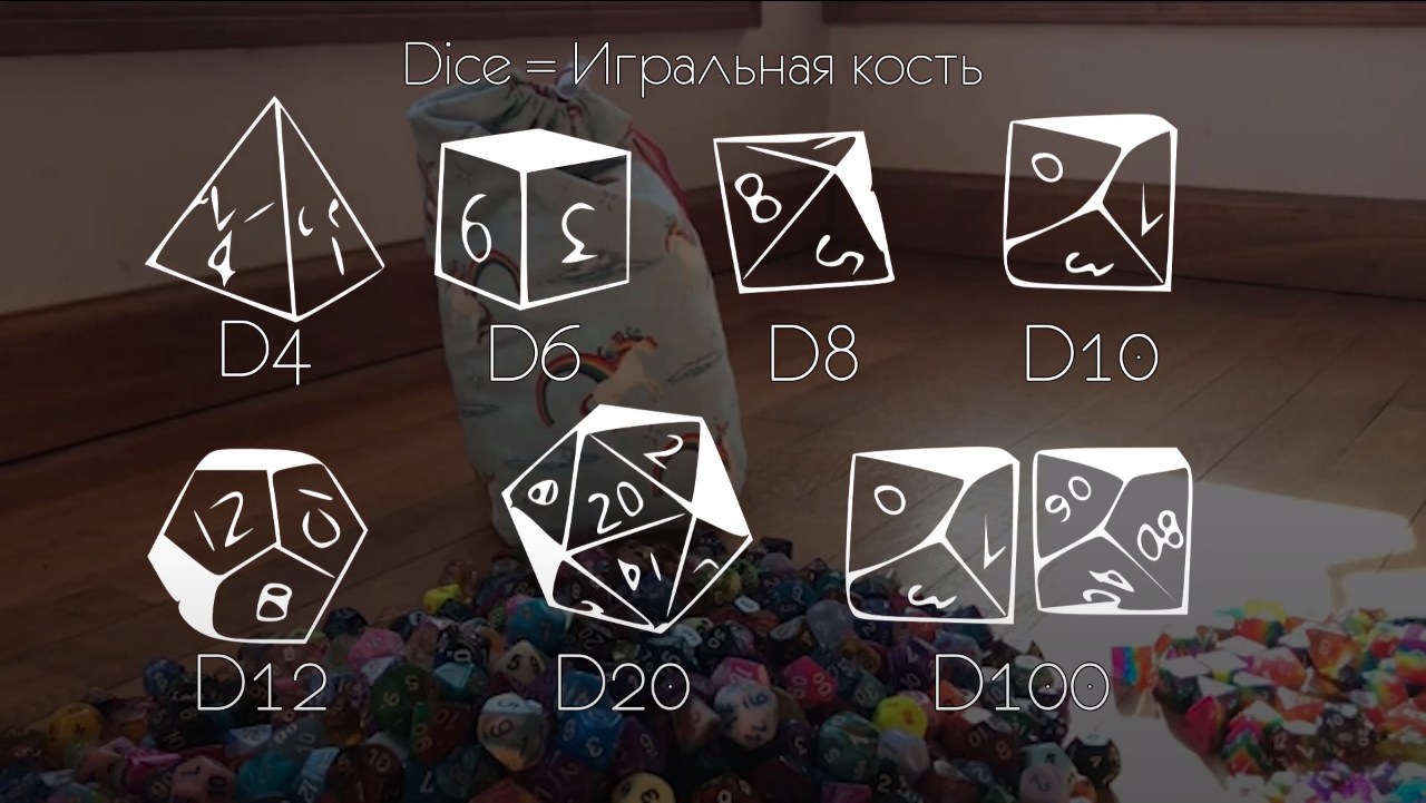 Существует несколько видов дайсов - Д4, Д6, Д8, Д10, Д12, Д20, Д100. Последний часто еще называют процентником. Буква “Д” - обозначает слово “дайс”, то есть “куб”. А цифра - количество его граней. Не бойтесь, на сотом кубе их всего десять (вся тайна в том, для определения числа от одного до ста используется два Д10 куба). Если вам понадобится Д2, то можете использовать простую монетку. (логично)