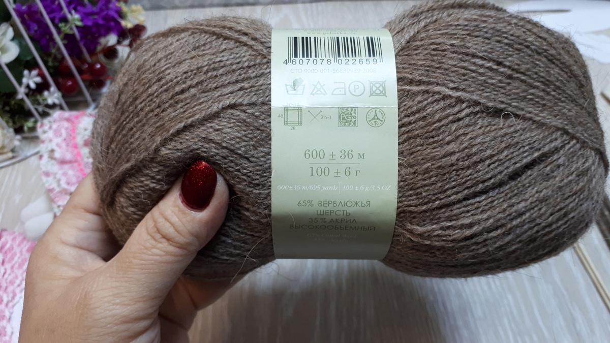 -шерстяная, тонкая пряжа, я брала "Верблюжью", фабрики Пехорка, 600 м на 100 гр.