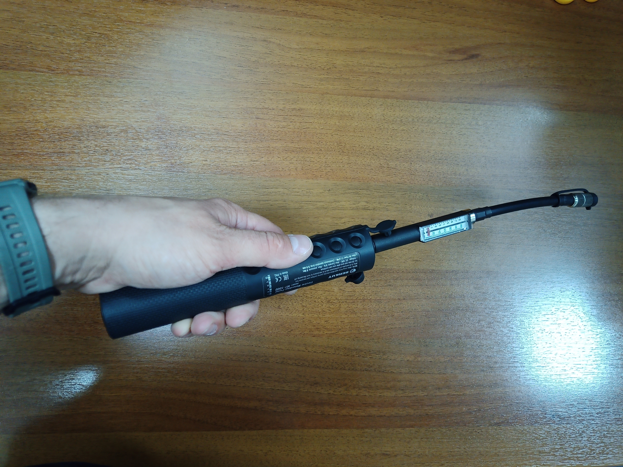 А еще при самом первом взгляде на девайс у меня возникло недоумение, почему они длину шлангометра сделали длиннее самого корпуса. Прочность цепи определяется прочностью самого слабого звена компактность упаковки определяется размером наибольшего элемента. Шлангометр неразъемный, а под манометром торчит какая-то нелепая пластиковая писька.