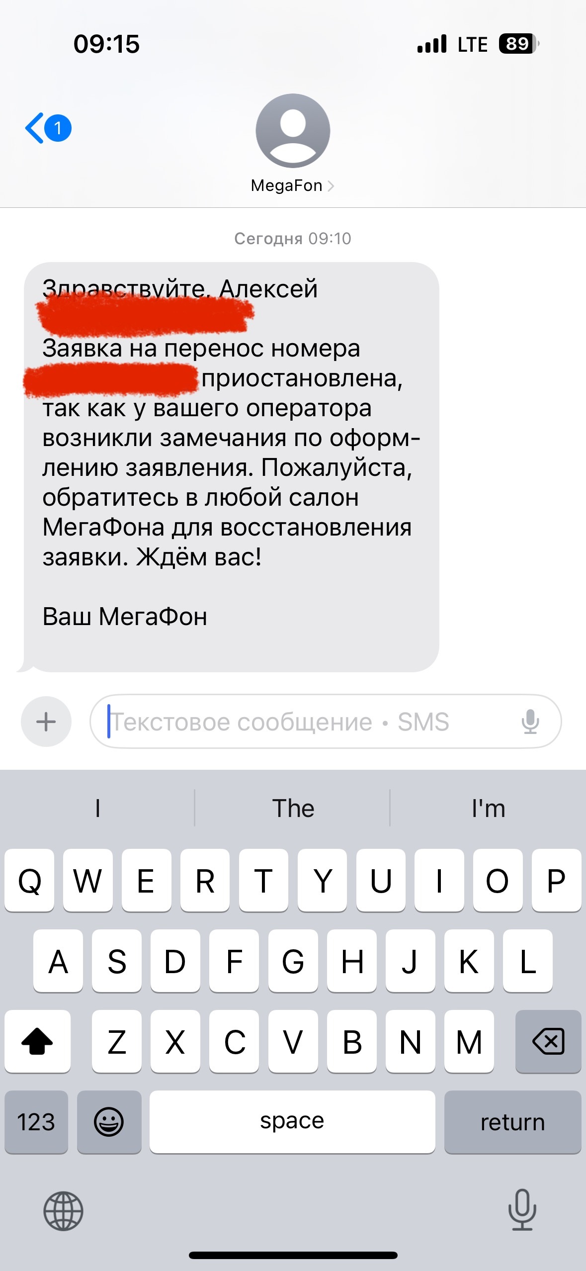По возвращению домой я заказал симку с переносом номера и тарифа, забрал ее с салона мегафона и стал ждать переноса. Сегодня приходит смс что ваша заявка приостановлена благодаря оператору т2