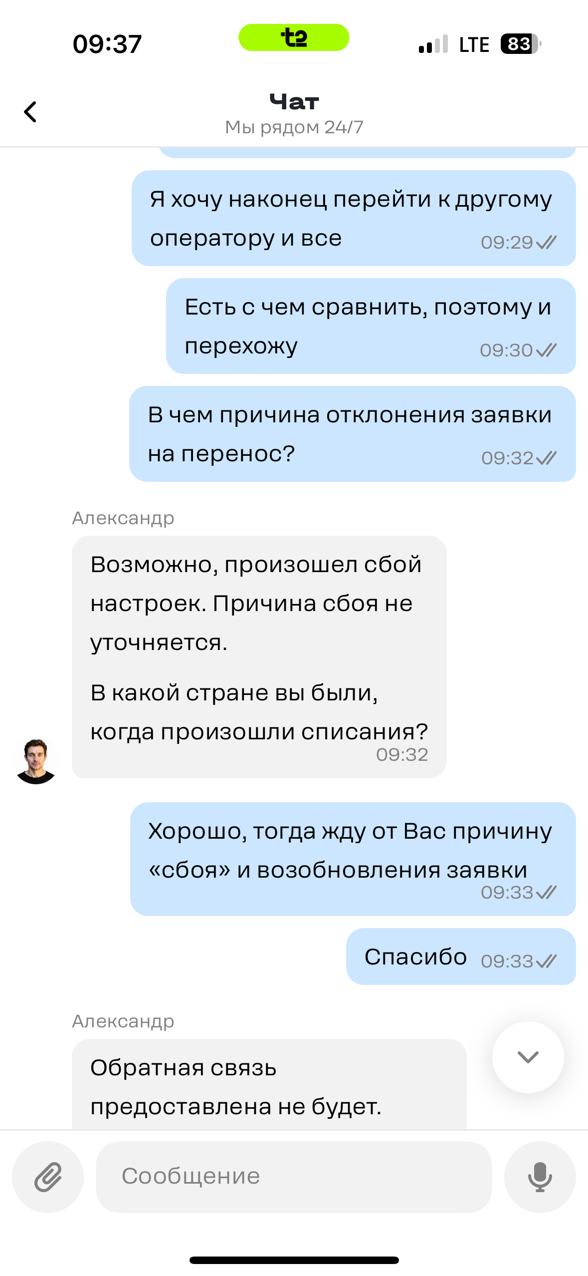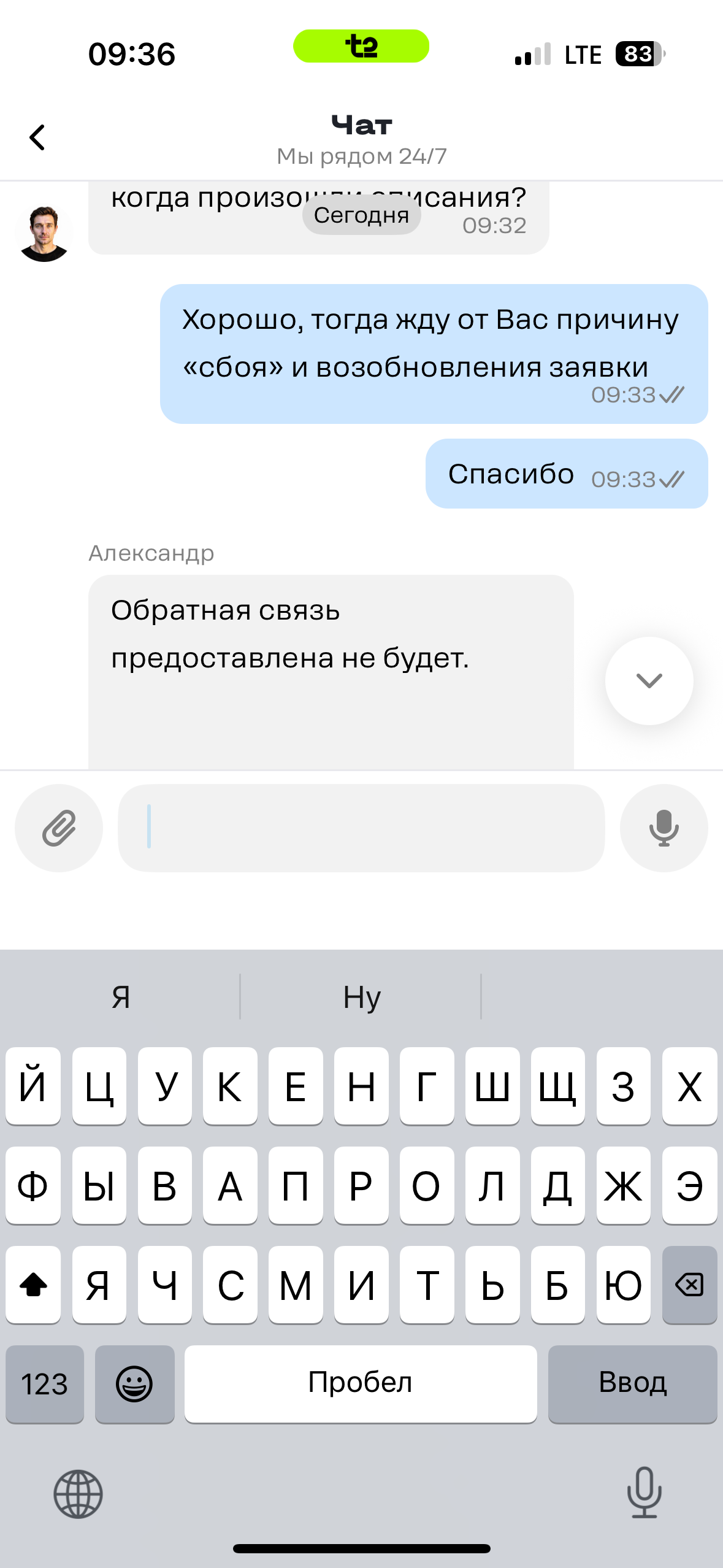Написав в поддержку теле2 оператор мне сообщил что возник «какой то технический сбой» хз почему и как, информации никакой и обратной связи не будет! Пожалуйста оставайтесь с нами, давайте решим все проблемы только оставайтесь…